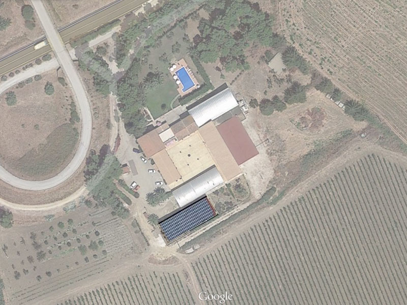 Il progetto riguarda la realizzazione di una struttura in acciaio da destinare a ricovero di mezzi agricoli con copertura fotovoltaica da 50 kWp a servizio dell'attività. Questa azienda agricola, ubicata all'interno della campagna siciliana, produce olio e vino in biologico, di alta qualità. Il manufatto realizzato, di forma rettangolare di dimensioni 32,4x12,0 mt, ha il lato maggiore che si sviluppa lungo la direttrice Nord-Est Sud-Ovest ed è costituito da 10 pilastri IPE240 incastrati alla fondazione in c.a. e collegati con un vincolo a cerniera alle travature reticolari in acciaio. Queste ultime sono costituite da correnti superiori ed inferiori in profilati doppi ad L a lati uguali, del tipo 70x70x6 e da aste di aprete in profilati accoppiati ad L 40x40x5, poste ad interasse di 8 mt. Le travi secondarie IPE140, presentano uno schema di una trave su tre appoggi di cui uno cedevole elasticamente. La copertura è realizzata con pannelli in alluminio schiuma poliuratica su cui sono fissati i pannelli FV. La fondazione è del tipo profondo e sono stati impiegati 10 pali in c.a. del diametro 60cm e lunghezza 10m. Alla testa dei pali sono stati realizzati plinti quadrati collegati da travi pastoie in c.a..